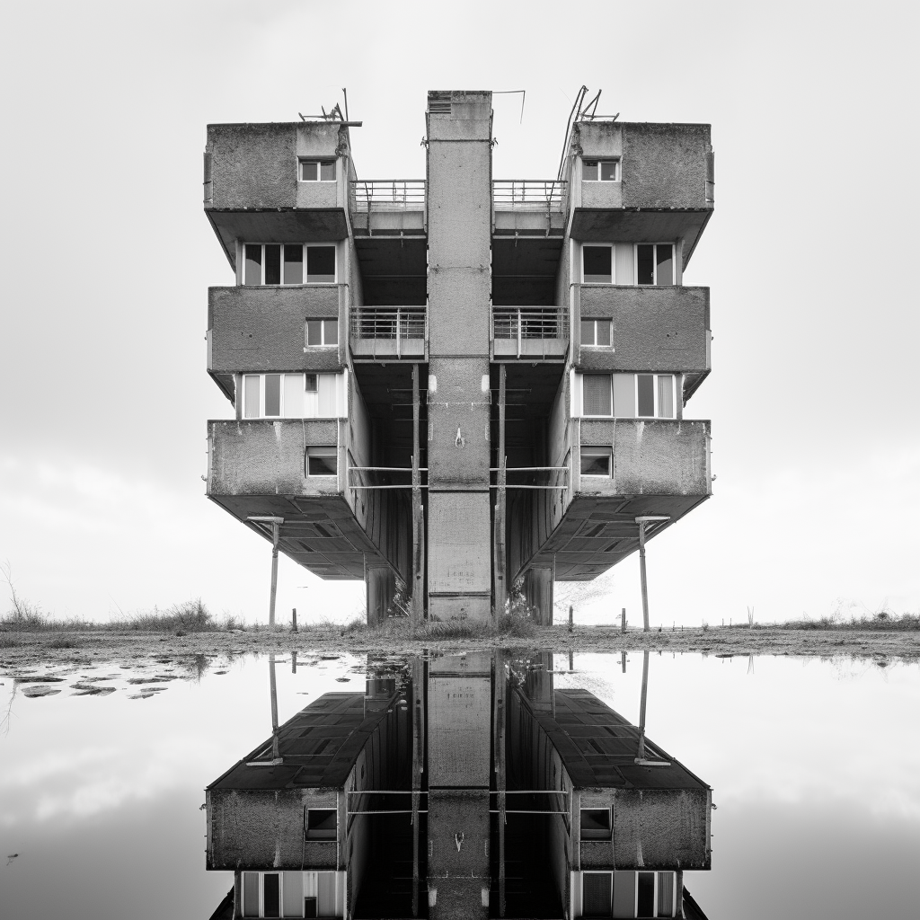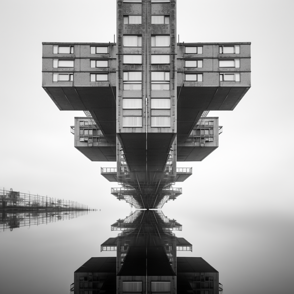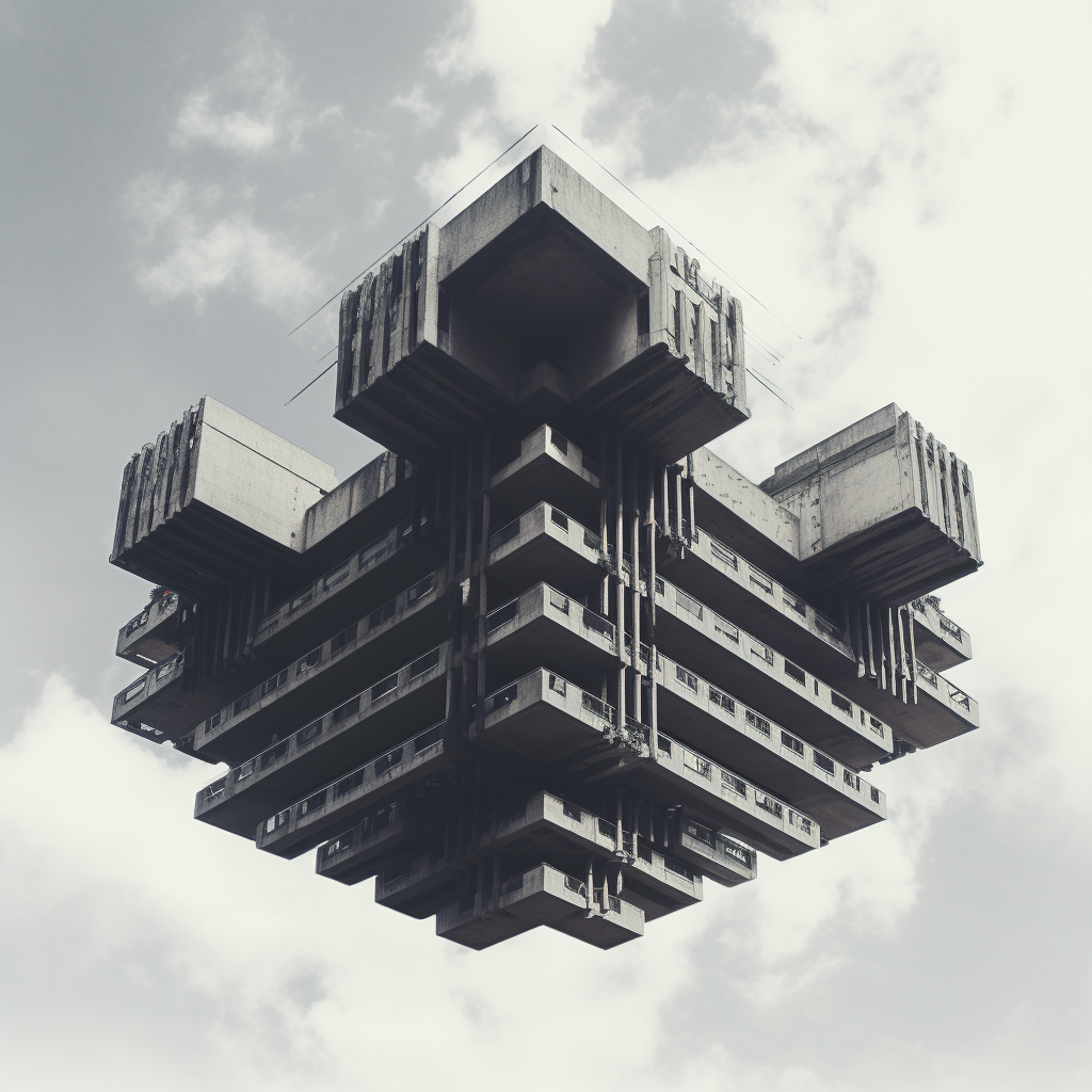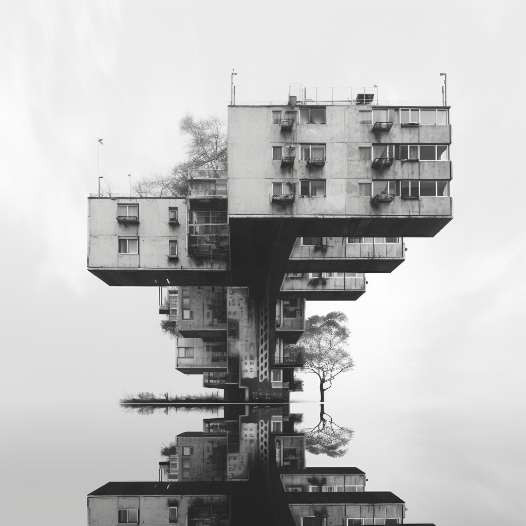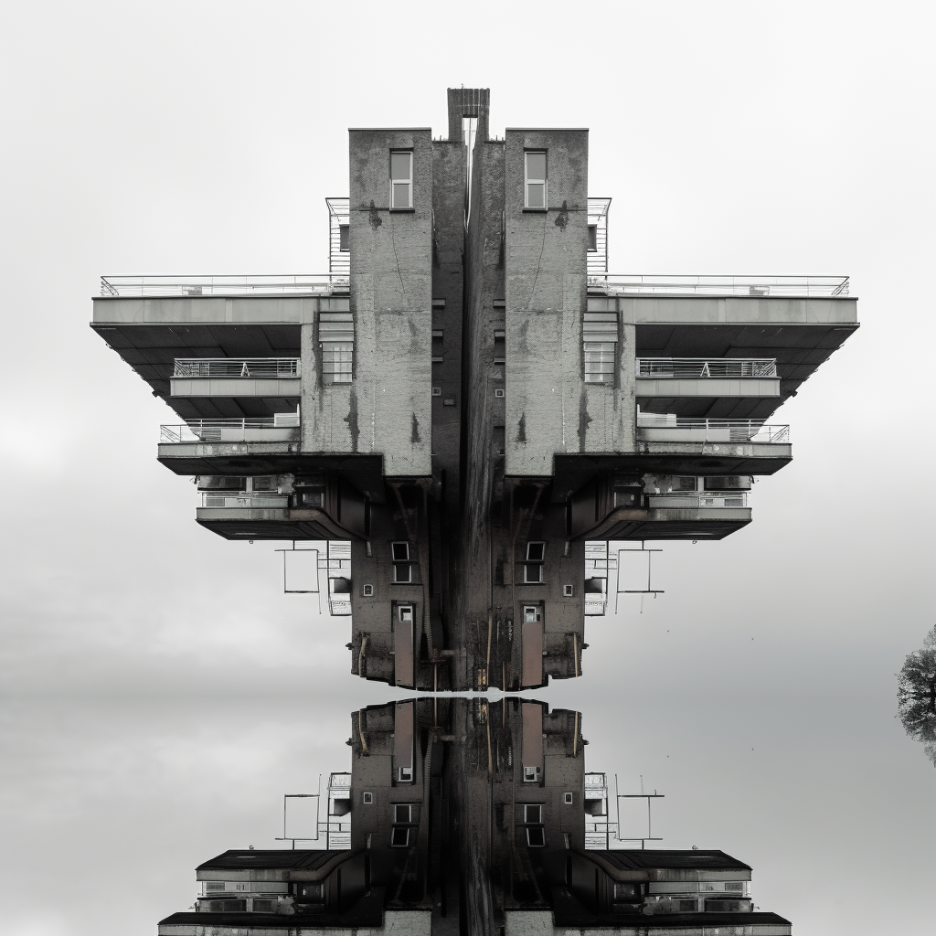 This new series updates Coldwell’s ongoing examination of photographic truth, but now for the age of AI. These surreal and strangely anachronistic brutalist cityscapes are actually AI recreations of Coldwell’s 2020 photography series Everything is Real. The learning model has conjured these forms by studying Coldwell’s illusionist photography of buildings, but unlike that earlier series, nothing we see here can be believed. In trying to interpret Coldwell’s deceptive photographs of the built environment, AI has accidentally invented impossible architectural forms. Towering structures that defy the laws of physics, but look strikingly real.
