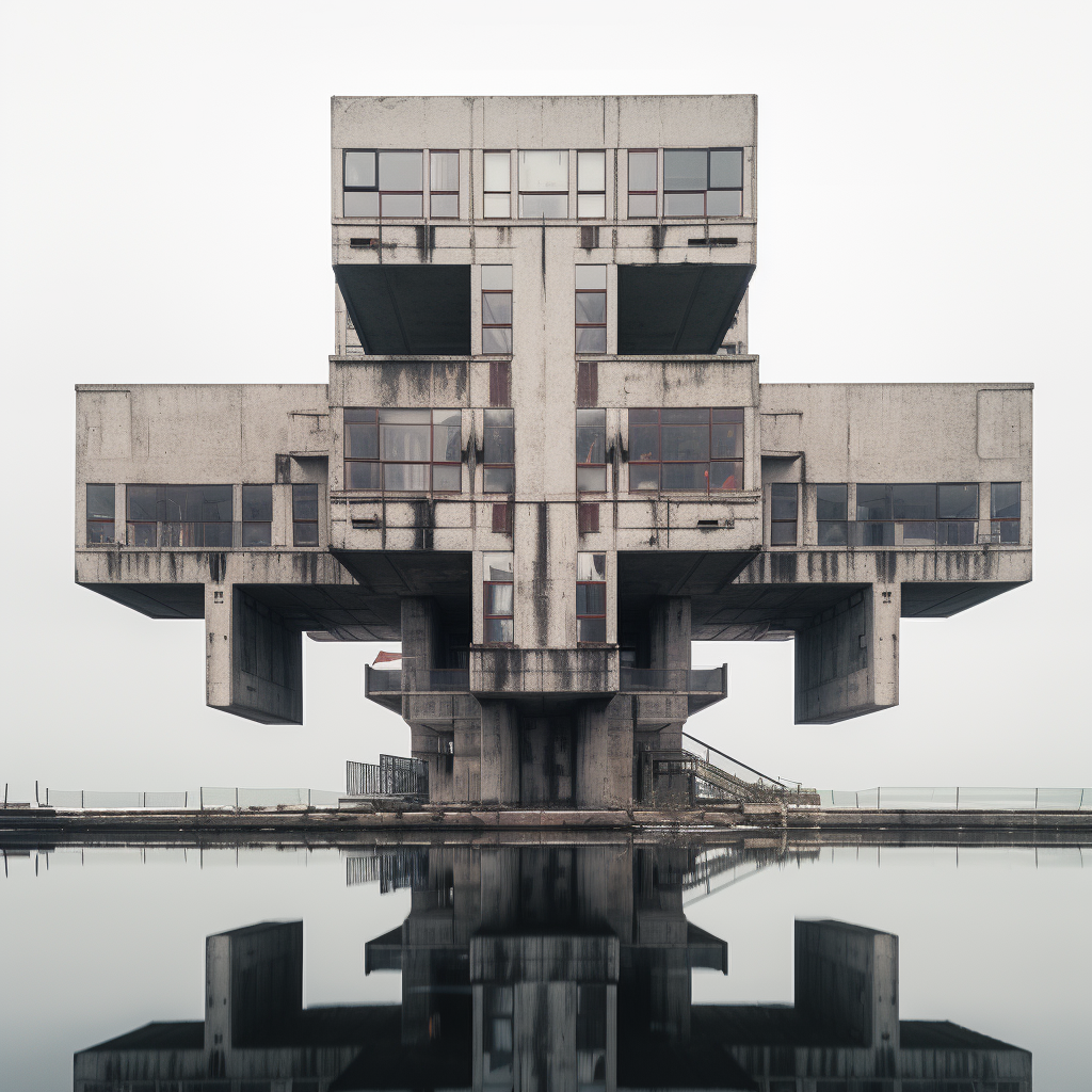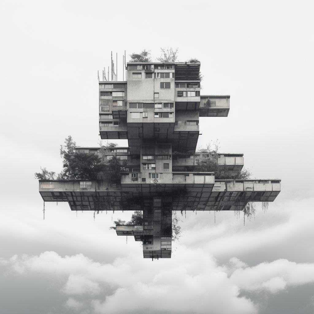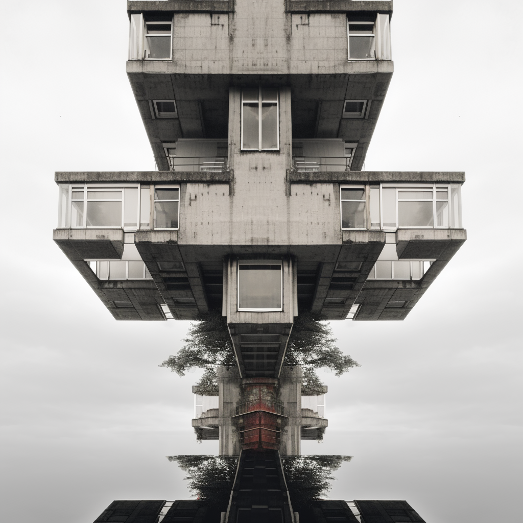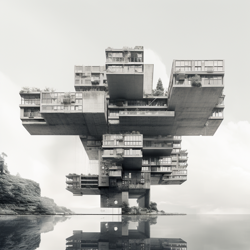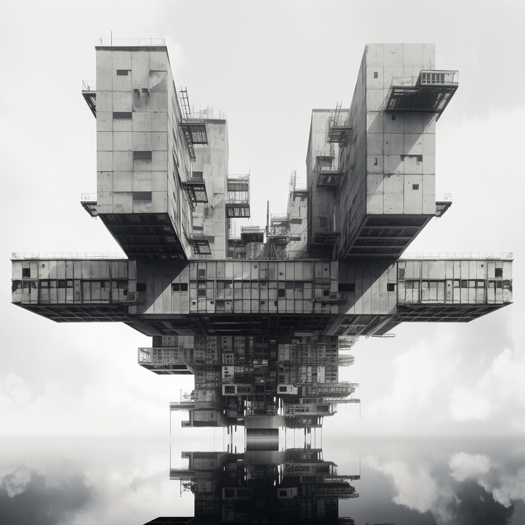 This new series updates Coldwell’s ongoing examination of photographic truth, but now for the age of AI. These surreal and strangely anachronistic brutalist cityscapes are actually AI recreations of Coldwell’s 2020 photography series Everything is Real. The learning model has conjured these forms by studying Coldwell’s illusionist photography of buildings, but unlike that earlier series, nothing we see here can be believed. In trying to interpret Coldwell’s deceptive photographs of the built environment, AI has accidentally invented impossible architectural forms. Towering structures that defy the laws of physics, but look strikingly real.