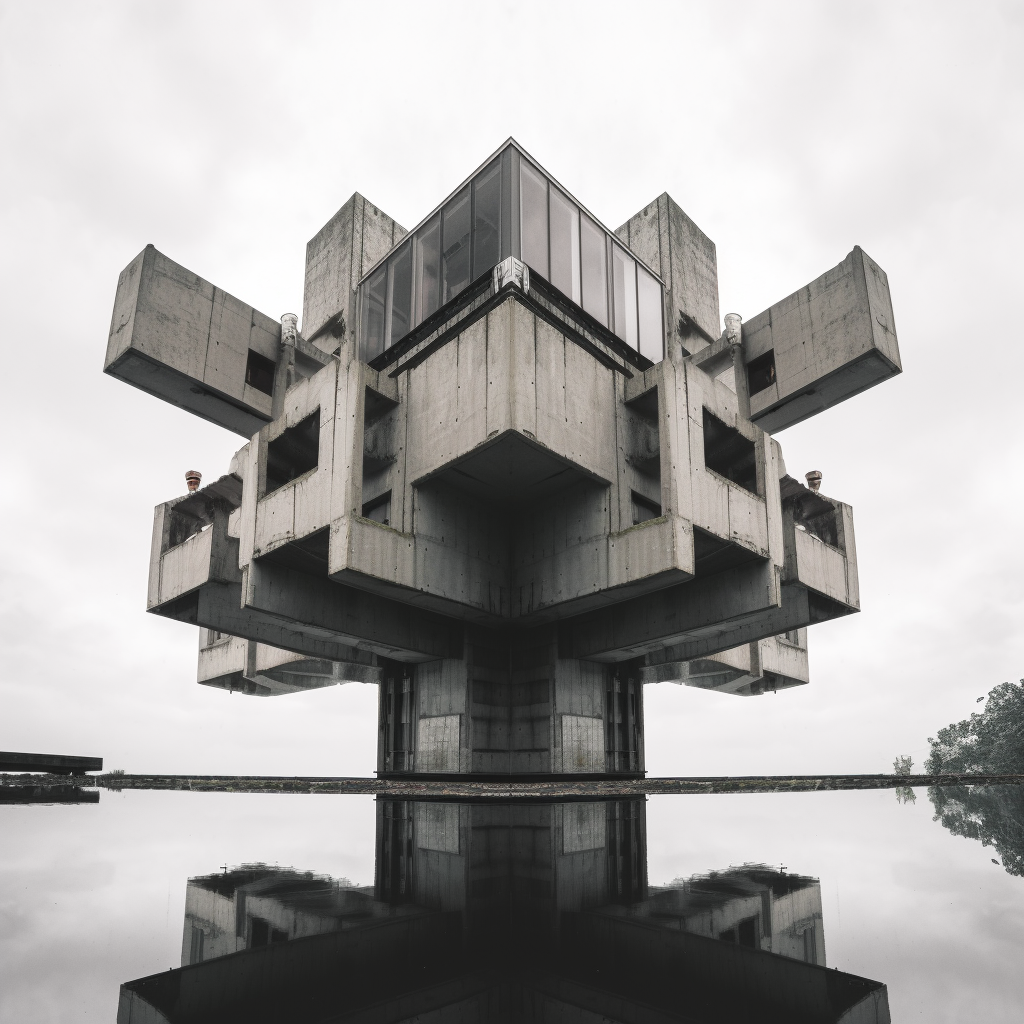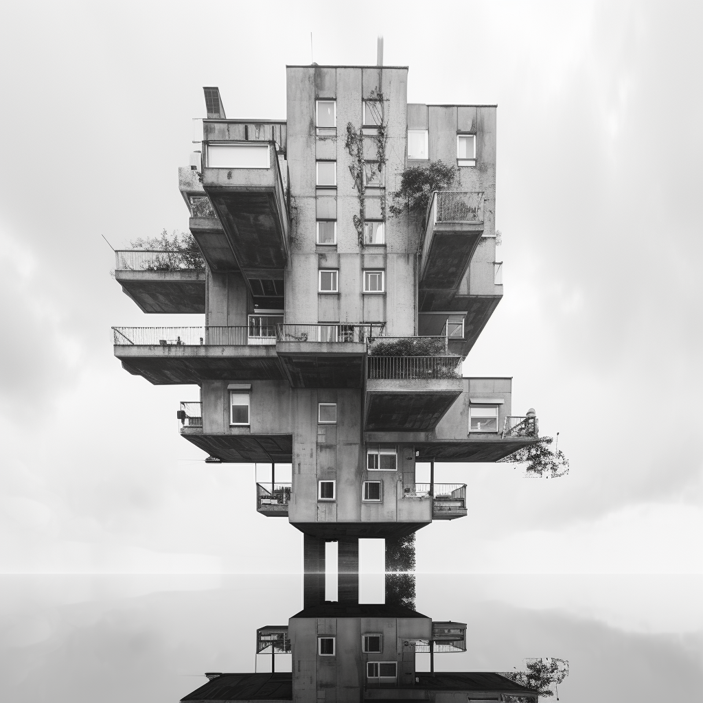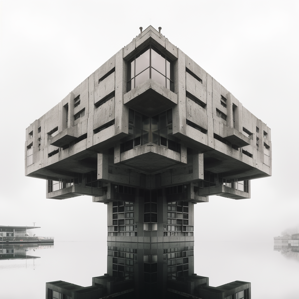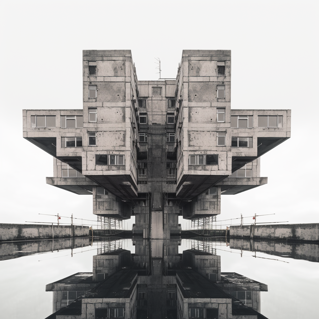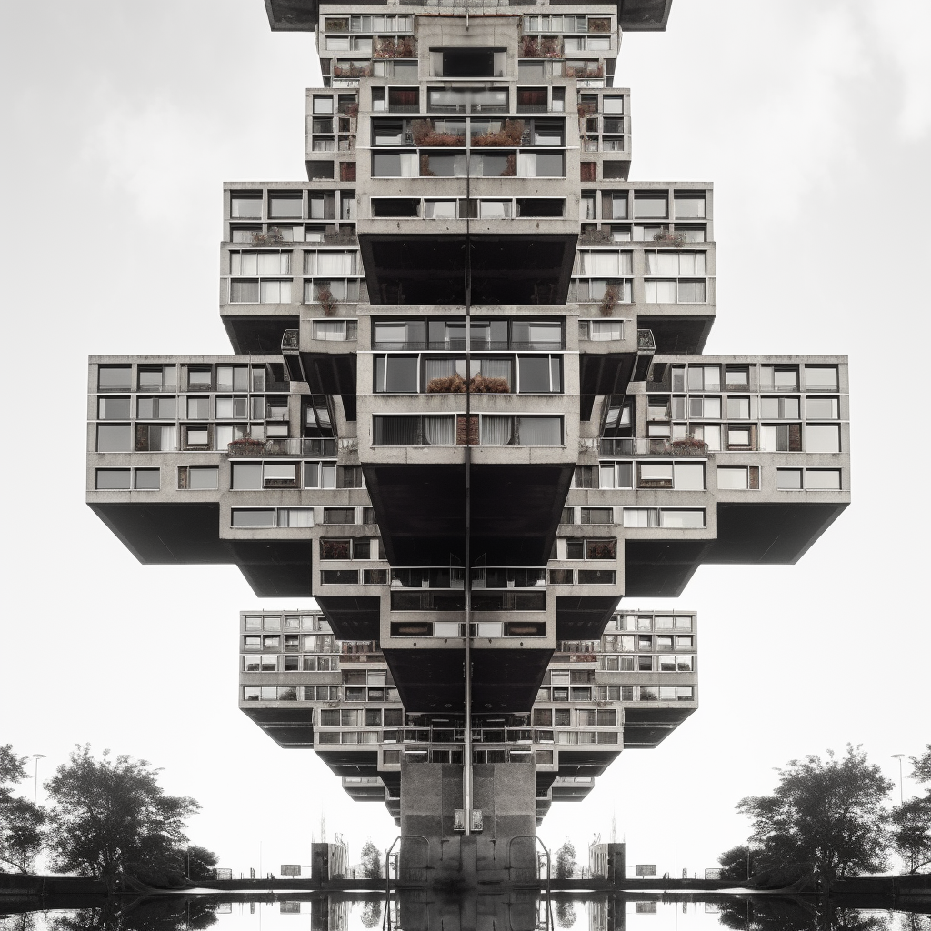 This new series updates Coldwell’s ongoing examination of photographic truth, but now for the age of AI. These surreal and strangely anachronistic brutalist cityscapes are actually AI recreations of Coldwell’s 2020 photography series Everything is Real. The learning model has conjured these forms by studying Coldwell’s illusionist photography of buildings, but unlike that earlier series, nothing we see here can be believed. In trying to interpret Coldwell’s deceptive photographs of the built environment, AI has accidentally invented impossible architectural forms. Towering structures that defy the laws of physics, but look strikingly real.