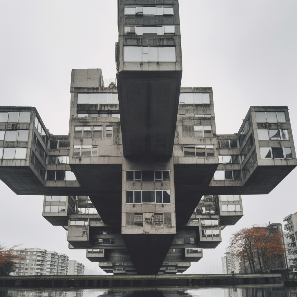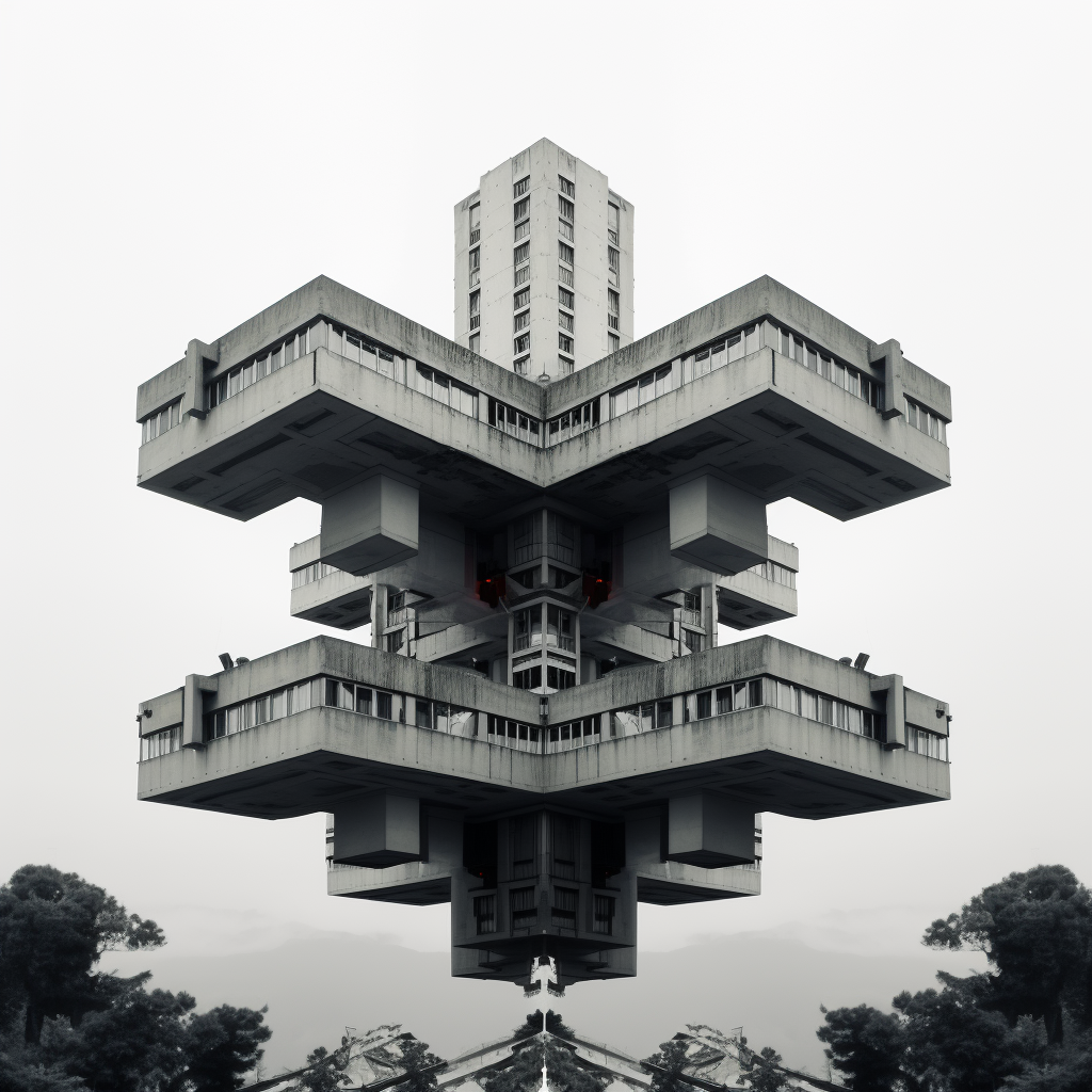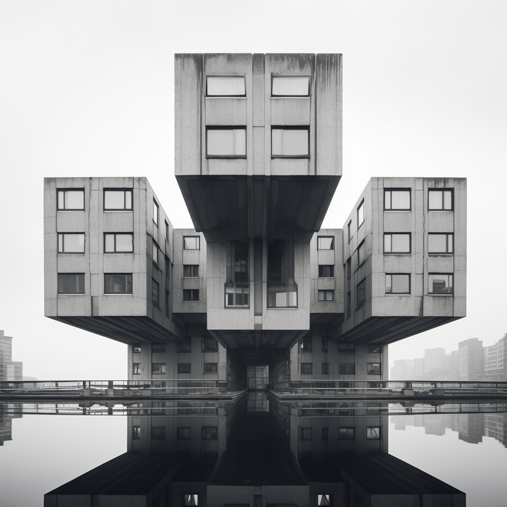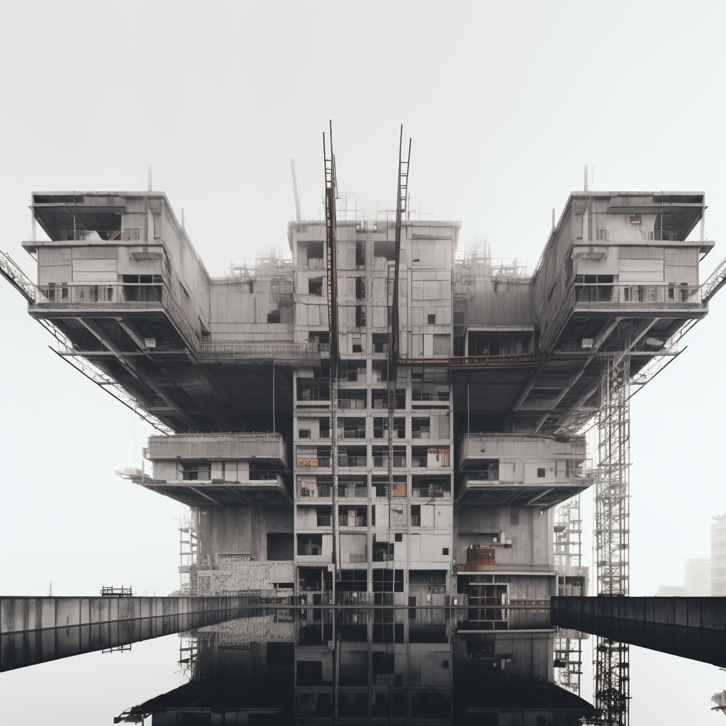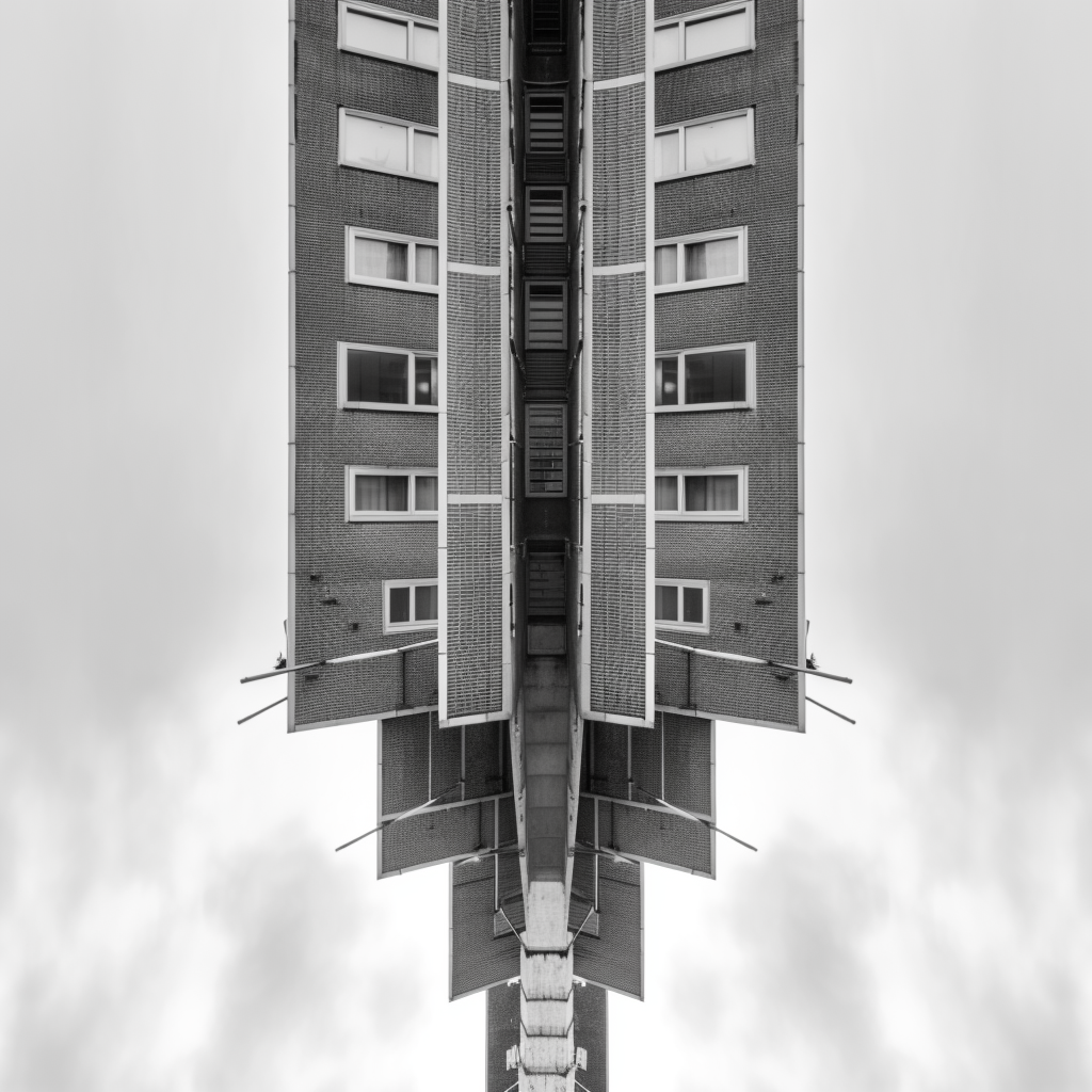 This new series updates Coldwell’s ongoing examination of photographic truth, but now for the age of AI. These surreal and strangely anachronistic brutalist cityscapes are actually AI recreations of Coldwell’s 2020 photography series Everything is Real. The learning model has conjured these forms by studying Coldwell’s illusionist photography of buildings, but unlike that earlier series, nothing we see here can be believed. In trying to interpret Coldwell’s deceptive photographs of the built environment, AI has accidentally invented impossible architectural forms. Towering structures that defy the laws of physics, but look strikingly real.