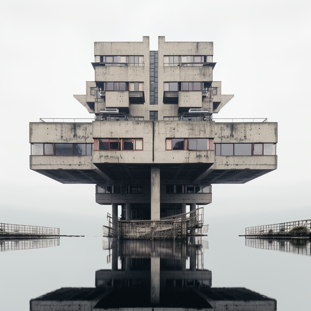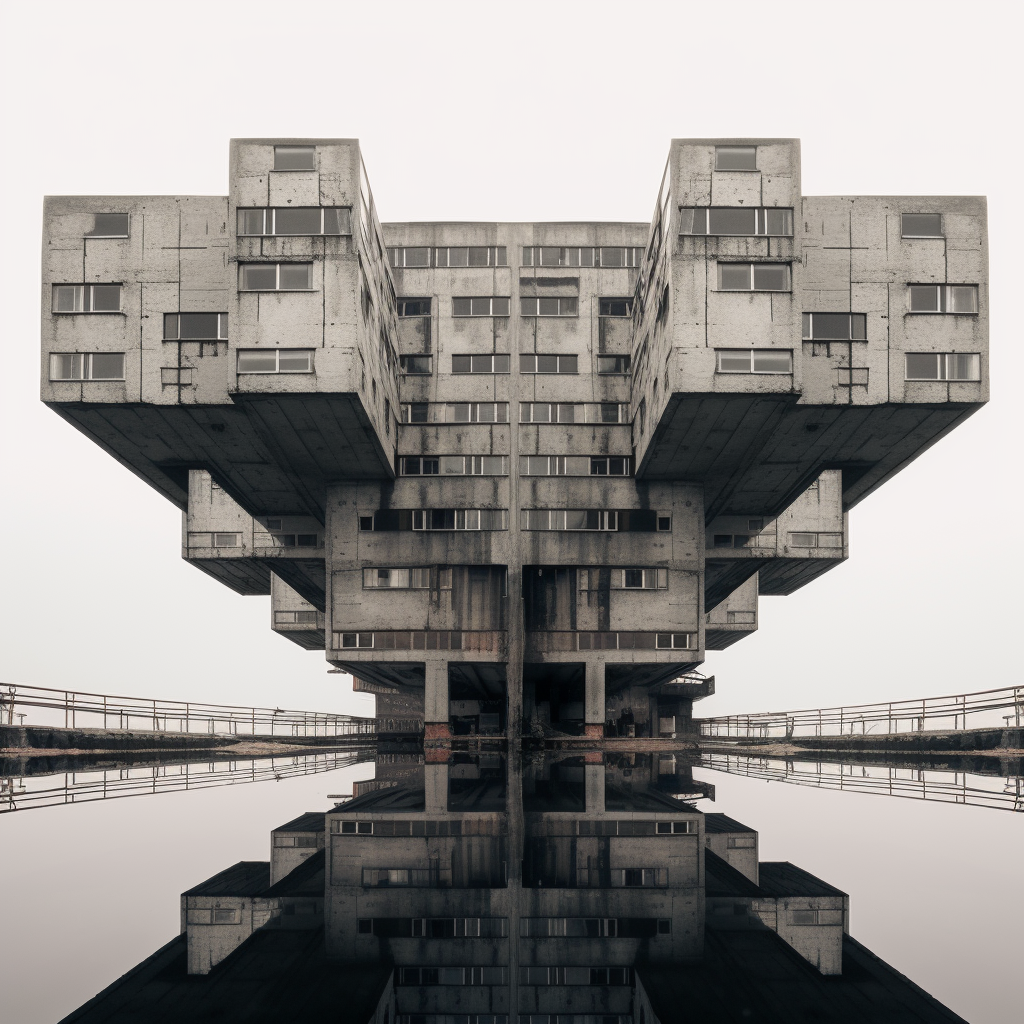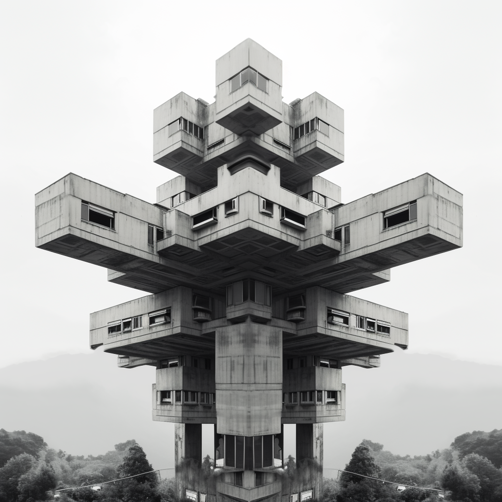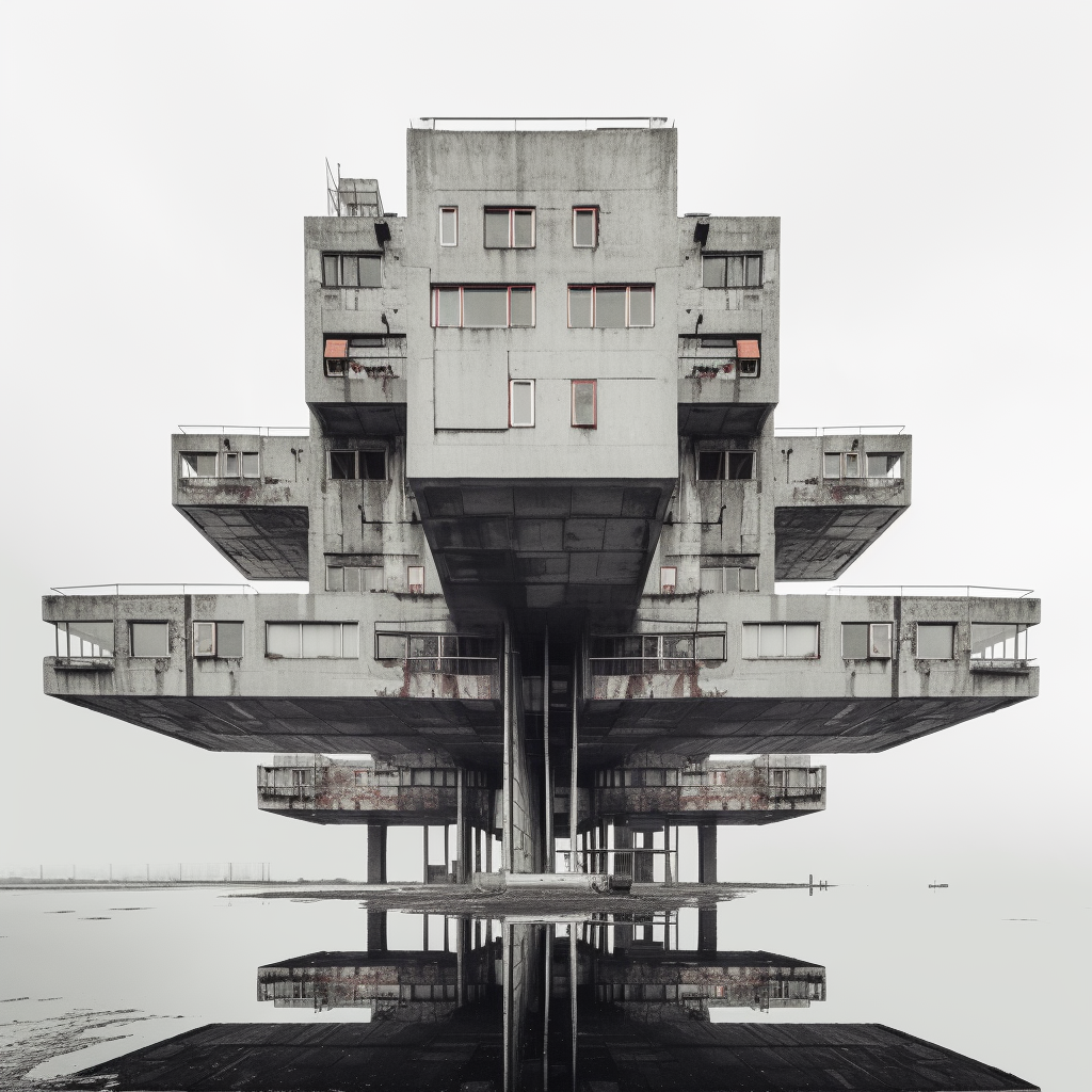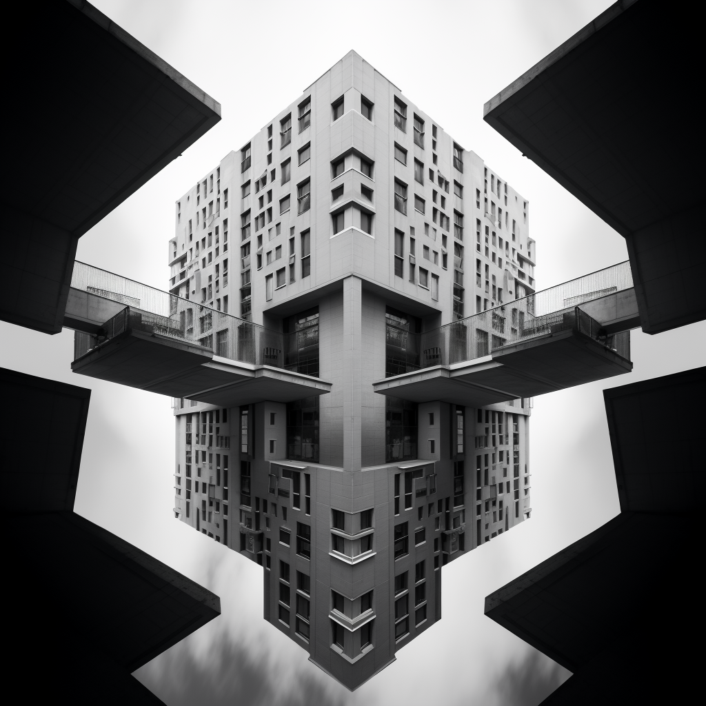 This new series updates Coldwell’s ongoing examination of photographic truth, but now for the age of AI. These surreal and strangely anachronistic brutalist cityscapes are actually AI recreations of Coldwell’s 2020 photography series Everything is Real. The learning model has conjured these forms by studying Coldwell’s illusionist photography of buildings, but unlike that earlier series, nothing we see here can be believed. In trying to interpret Coldwell’s deceptive photographs of the built environment, AI has accidentally invented impossible architectural forms. Towering structures that defy the laws of physics, but look strikingly real.